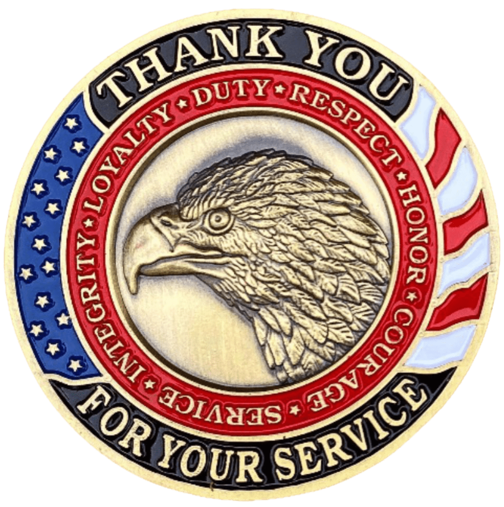 SAY THANK YOU TO THE MEN & WOMEN WHO HAVE SERVED & ARE CURRENTLY SERVING OUR GREAT COUNTRY WITH OUR "HONORING ALL WHO SERVED" THANK YOU COINS!